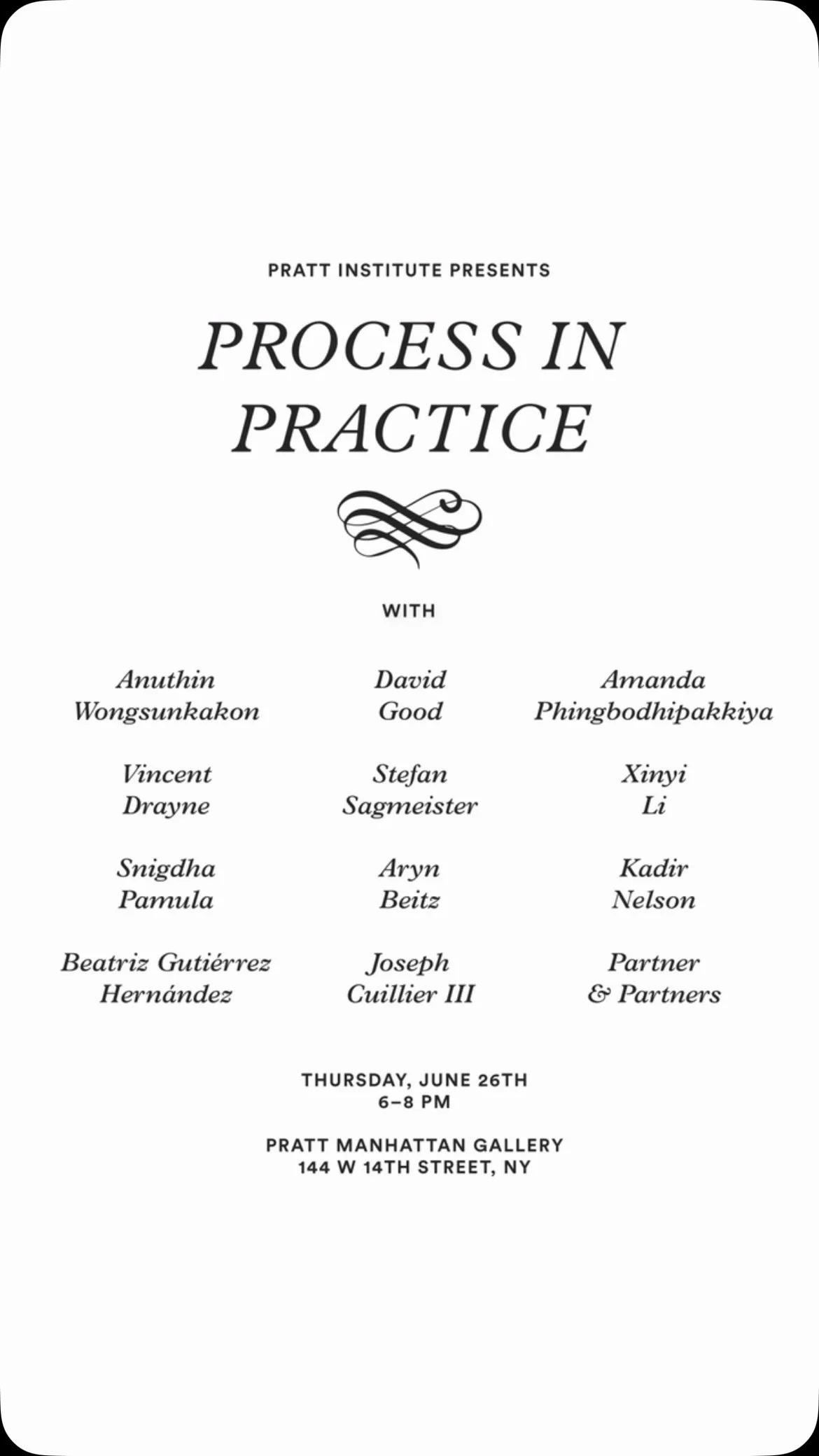 Process in Practice dismantles the perception of design as merely the visual result, instead emphasizing research, experimentation, iteration, and invention. Curated by Ginger Gregg Duggan and Judith Hoos Fox of c2-curatorsquared, the exhibition reveals both the complexity of the design process and the diverse practices that define the field today. From branding and type design to social impact work and fine art, the twelve Pratt alumni featured in Process in Practice span the breadth of design’s potential.